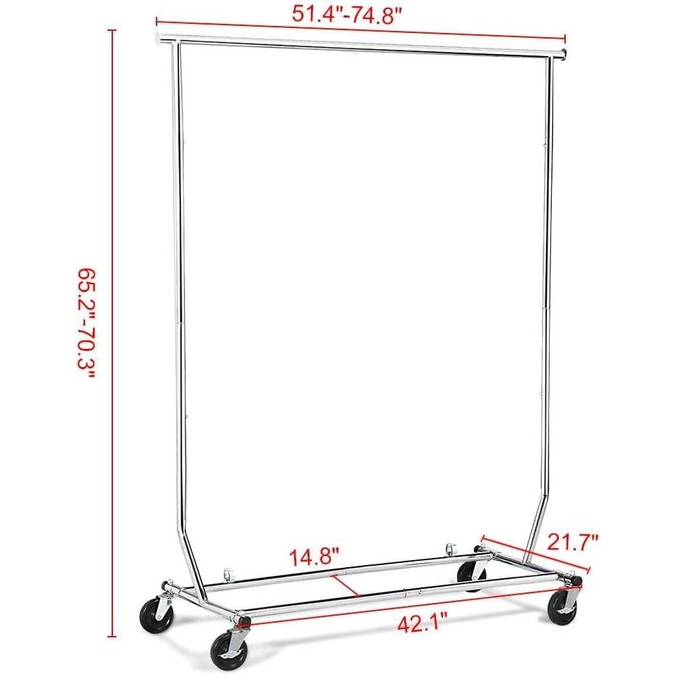 • STRONG CHROMED METAL RACK: Constructed of heavy gauge metal with chromium plating, this garment rack boasts high strength and outstanding rust resistance. With a 200-pound weight capacity, it can hold up and roll easily even with your heaviest coats.
